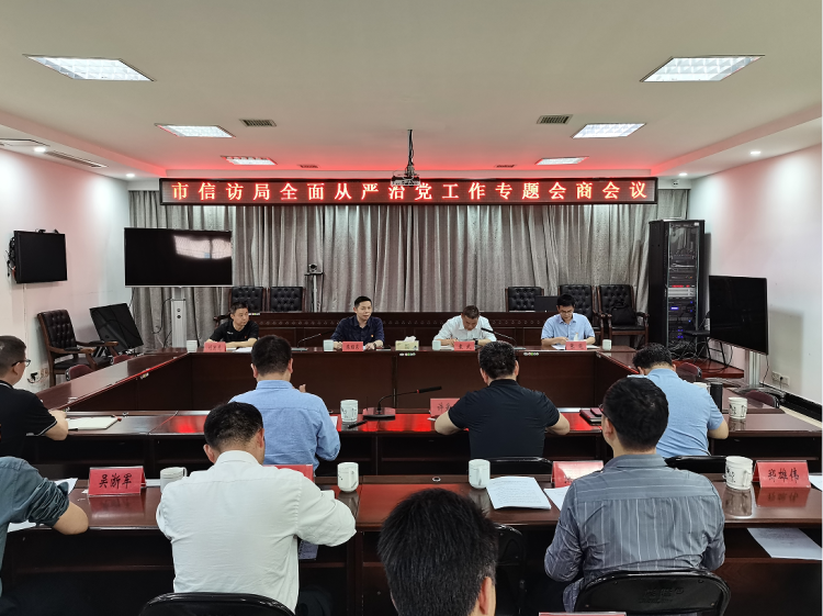 4月20日下午,市信访局召开全面从严治党工作专题会商会议。市政府副秘书长、市信访局党组书记、局长陈绍东主持会议并作工作报告,市纪委监委派驻市政府办纪检监察组全体人员和市信访局全体党员同志参加会议。