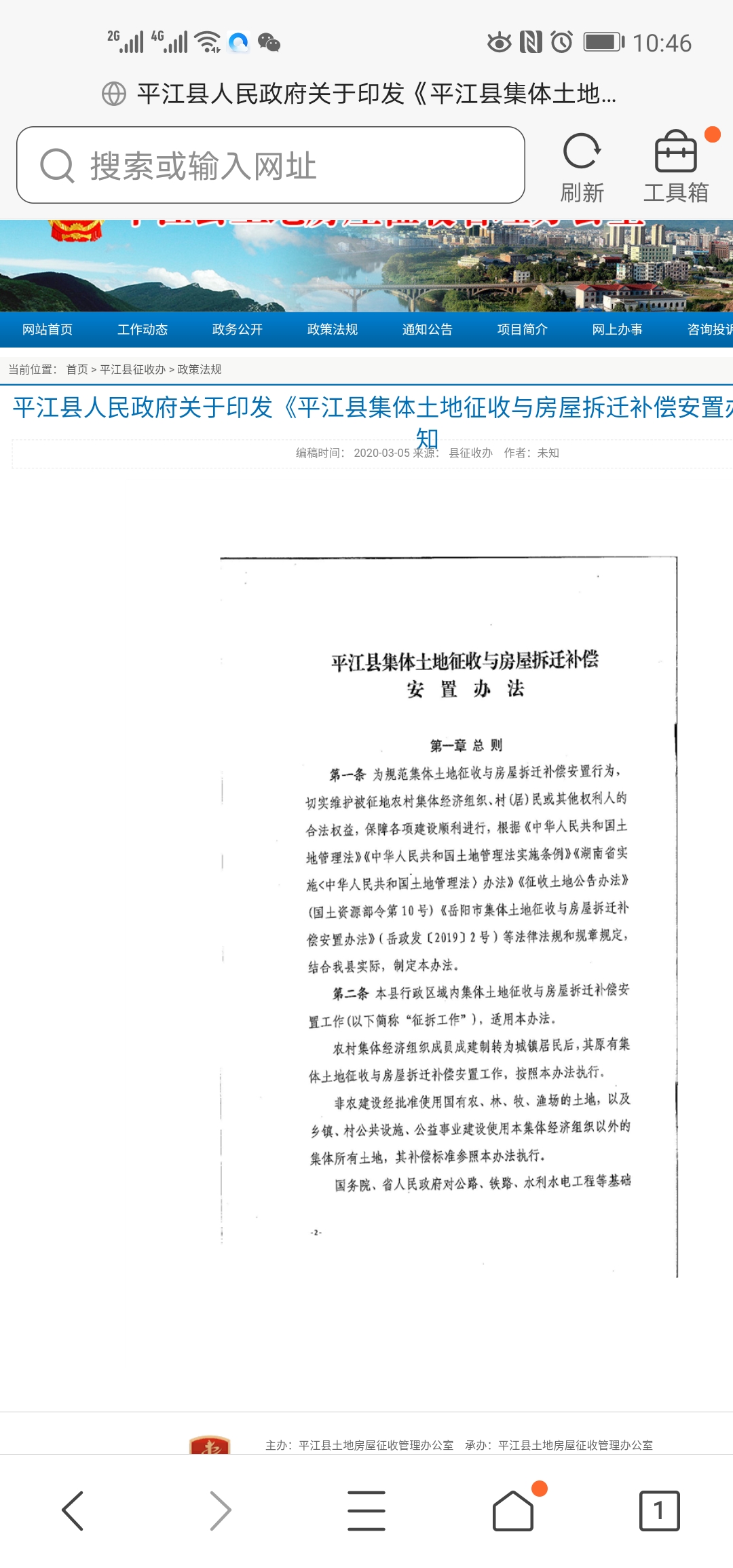 标题: 县征拆办2020年3月25日发布的《平江县集体土地征收与房屋拆迁补偿安置办法》通知仅一张图片,没有原文件附件,如何看?