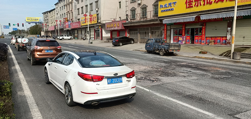 107国道云溪段云溪工业园门口红绿灯下有几个大坑 早上开车经过好险