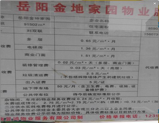 经调查,开发区金地家园的前期物业管理服务,是由湖南昱鸿物业服务有限公司通过招投标在房产局物业管理办中标(编号GTZD2010-019中标通知书:服务等级为三级标准)。二次供水价格:2.45元/立方米+8%的水损+二次供水加压设施实耗分摊电费+0.30元/立方米生活垃圾处置费,并按月公示(如上图)。现金地家园实收水费3.70元/立方米。