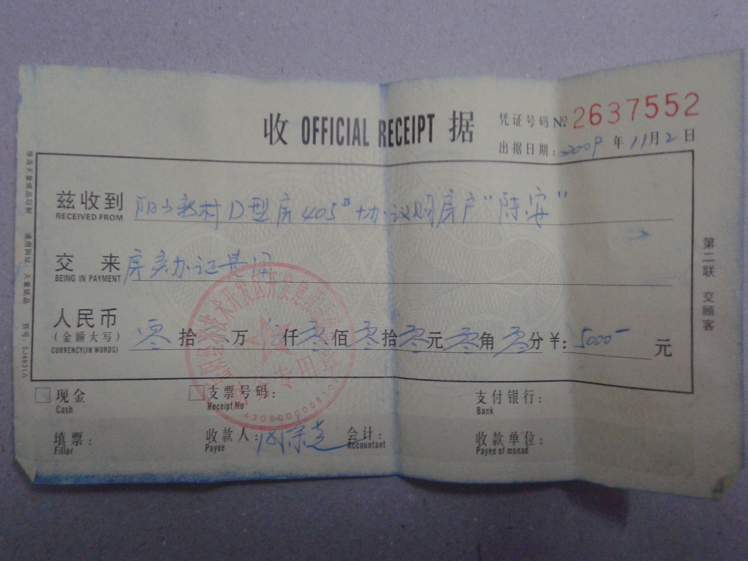 你好,我是八字门青年东路阳山新村,东5栋东单元(D型房)的业主。2009年我们就把房产证办证费用和资料都交上去了(附:收据)。请问为什么房产证一直办不下来,具体什么时候能办下来。谢谢