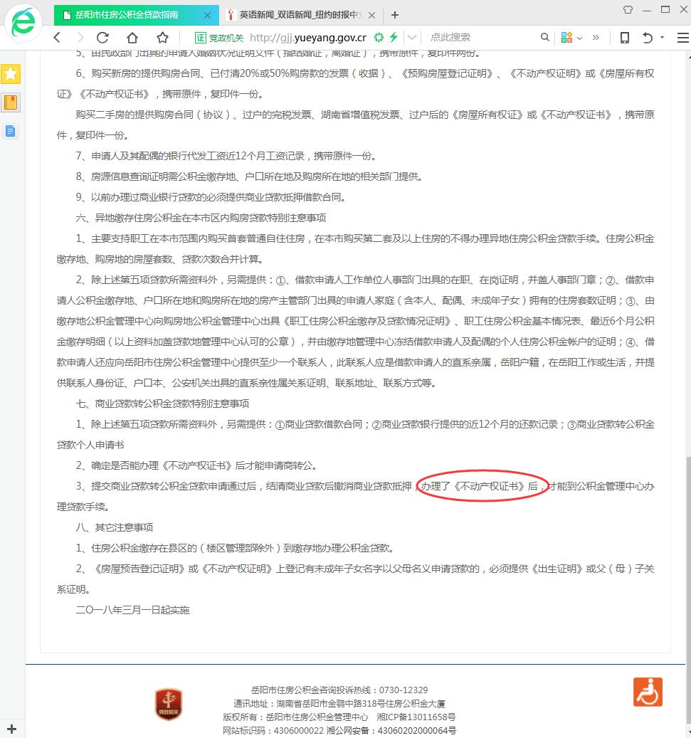 | 回复内容: | 穆先生:您好!感谢您对住房公积金的关心与关注! 就您咨询的住房公积金事宜现予回复:根据《岳阳市住房公积金个人住房贷款操作实施细则》规定:原商贷所购房还不能办理《不动产权证书》的,必须要求原商贷所购房的《不动产权证书》办妥后才能办理商转公贷款。 |