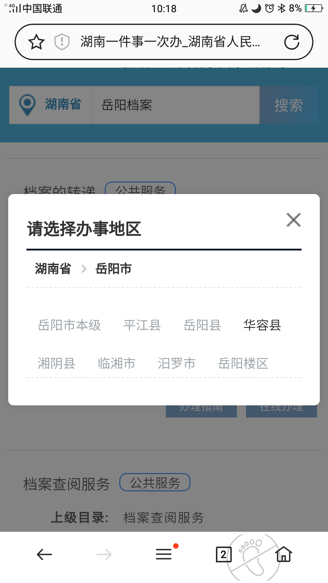 我是二战生,今年考上了研究生,学校要求以机要形式邮寄档案,请详细告诉我怎样才能办理好网上档案转递,我定位岳阳搜索档案,我的档案在岳阳人才交流中心但是如图所示,无法网上申请。