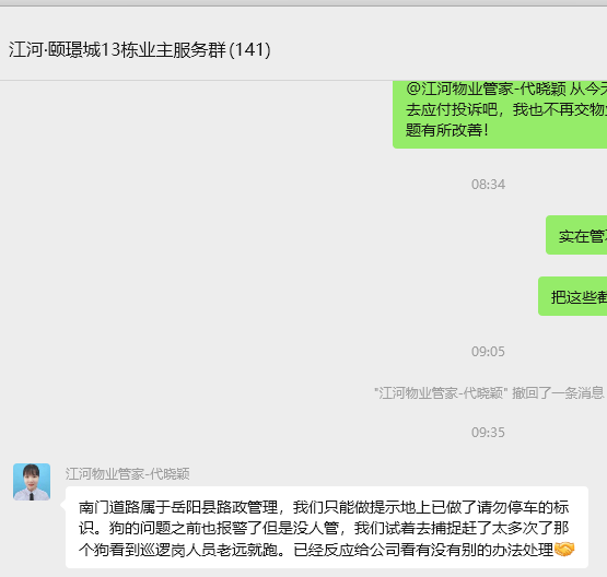 您好!您关于《江河颐璟城小区内流浪狗、不牵狗绳泛滥成灾》的反馈留言收悉,岳阳县人民政府办公室12345公众服务热线管理办公室将来信转交至岳阳县住房和城乡建设局。现就有关情况回复如下: