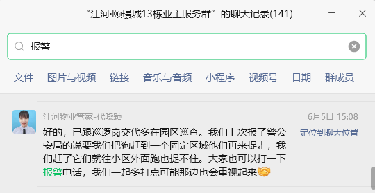 关于您反映的江河颐璟城小区内流浪狗问题,经了解,小区保安此前曾组织过抓捕行动,但实际效果并不理想。由于流浪狗警惕性较高,一旦发现陌生人靠近,便会迅速逃离,导致抓捕工作难以有效开展。为切实解决这一问题,我单位已明确要求物业公司进一步强化小区日常巡逻工作。在巡逻过程中,一旦发现流浪狗,应立即安排工作人员进行驱离。若驱离工作难以达到预期效果,物业公司需第一时间向公安部门上报,由公安部门依据相关规定和专业手段进行妥善处理,以保障小区居民的人身安全和正常生活秩序。